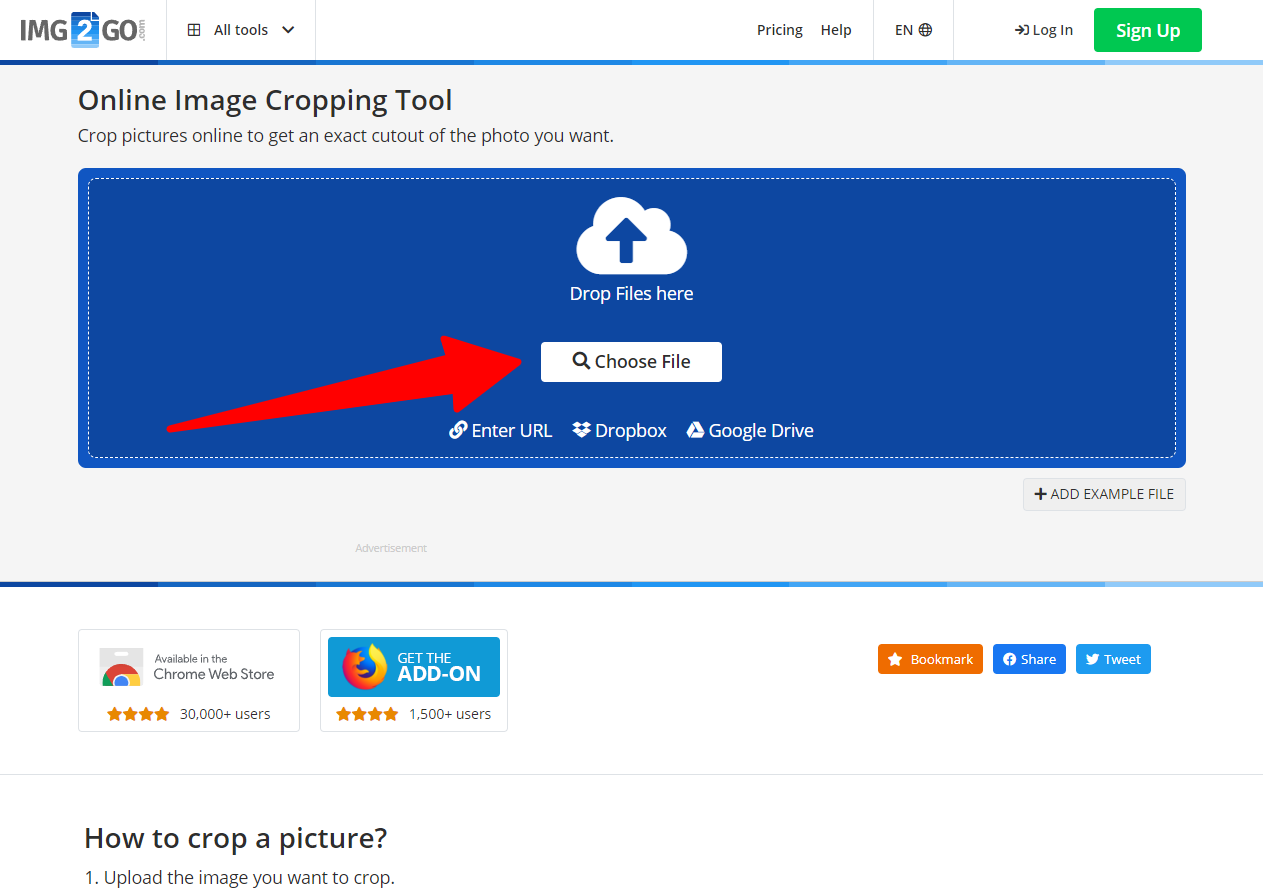 Odaberemo fotografiju koju želimo obraditi klikom na botun Choose file te ćete nakon uspješnog uploada fotografije biti preusmjereni na sljedeći ekran gdje počinjete s uređivanjem.