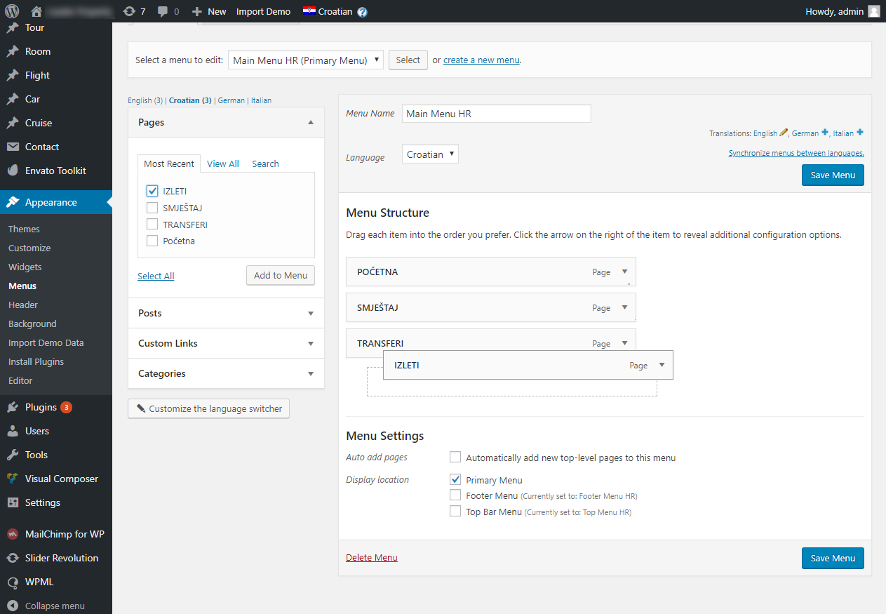 vašu stranicu kroz Wordpress administraciju.