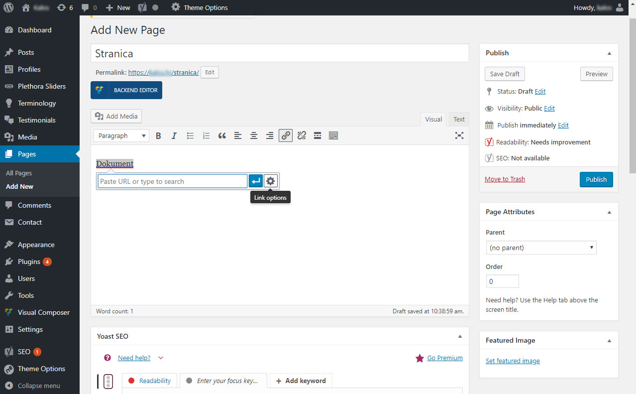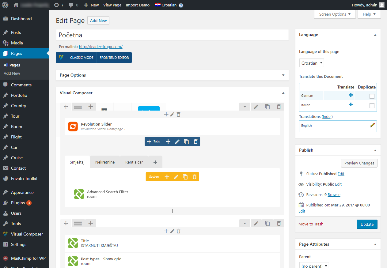 vašu stranicu kroz Wordpress administraciju.