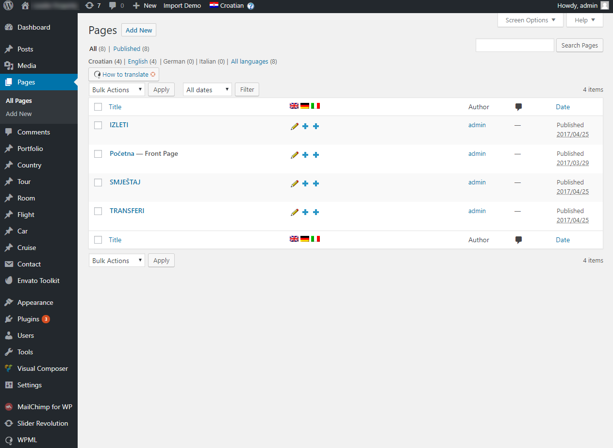 U meniju odaberemo Pages da bismo došli do izlista svih postojećih stranica koje
